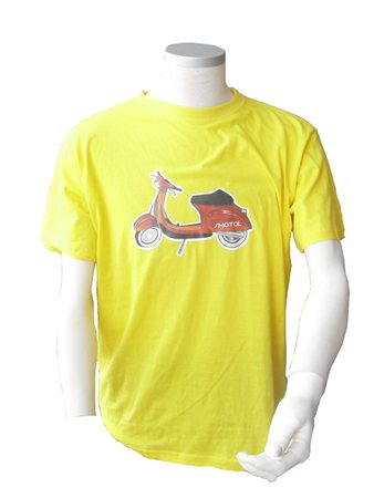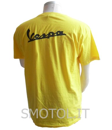 In Baumwollhemd Sommer Kurzarm-gelbe Farbe mit Druck auf der Vorderseite Vespa, und auf der Rückseite mit schriftlicher Vespa. P>