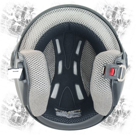 Casco demijet ultraleggero omologato modello VIZARD con visiera fino al mento. Dotato di un sistema di areazione che prevede l'ingresso dell'aria dalle prese d'aria frontali, e la canalizzazione attraverso l'interno con la fuoriuscita tramite gli estrattori posteriori. Gli interni e l'imbottitura sono ad alto livello di comfort, caratterizzate dall'utilizzo di tessuti ultra soffici.
