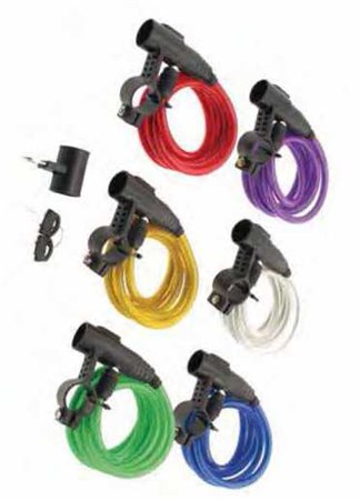 Lucchetto a spirale in acciaio ricoperto in nylon e con testa in ottone ricoperta in nylon. Il lucchetto ha doppia chiave ed è ricoperta.E' disponibile in diversi colori.