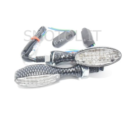 Coppia fanalini freccia per moto e scooter slim corte a led omologate, le più piccole in commercio con lente trasparente ovale ad incasso. Le frecce a led slim moto sono rivestite con vernice in carbon e sono in ferro, adatte per le alte velocità. La coppia frecce a led sono corredate da trasformatori per evitare intermittenze indesiderate. Sono adatte a :