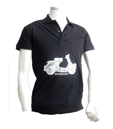 Polo Kurzarm schwarzer Baumwolle mit Seide Vespa Scheinwerfer niedrigen
